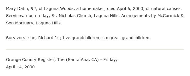 | | - Obit: Watertown Daily Times - 22 Apr 1991