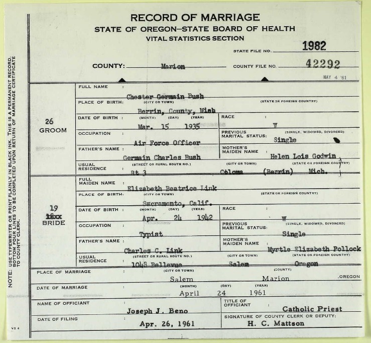 Chester Germain Bush - Elizabeth Beatrice Link