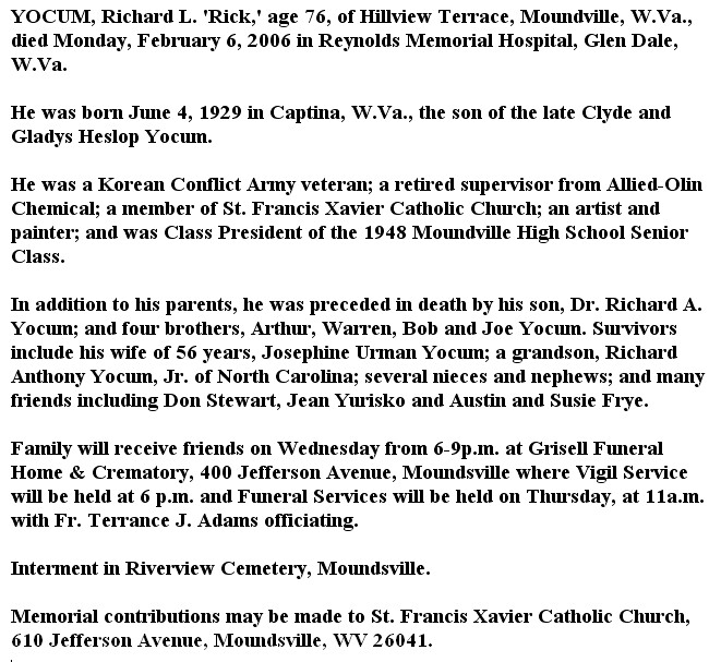 | | | - Obit: Weymouth News - 6 Feb 2009