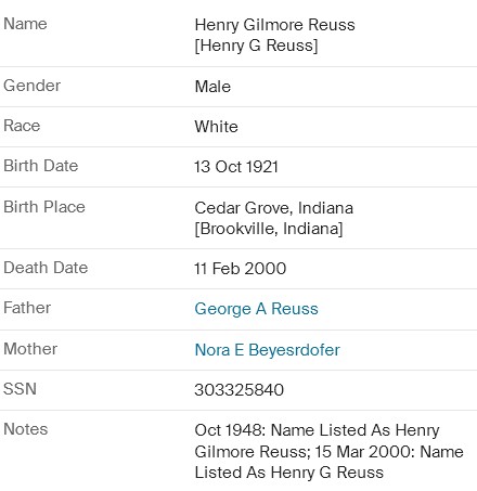 Residences1927 - Springfield, Franklin, Indiana | 1930 - Bath, Franklin, Indiana 1940 - Center, Union, Indiana 1950 - Brownsville, Union, Indiana 2002 - Liberty, Union, Indiana |