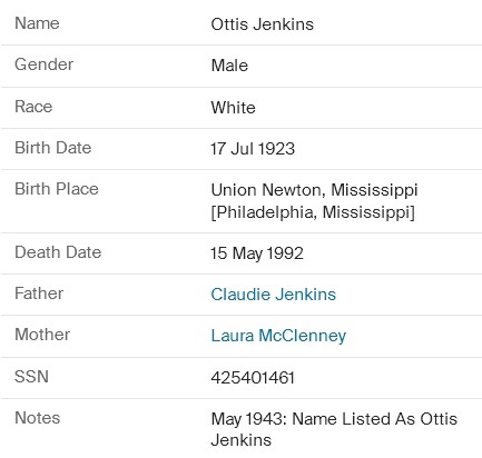 Residences1923 - Decatur, Newton, Mississippi | 1930 - Newton, Mississippi 1940 - Newton, Mississippi 1950 - Philadelphia, Neshoba, Mississippi 1992 - Meridian, Lauderdale, Mississippi |