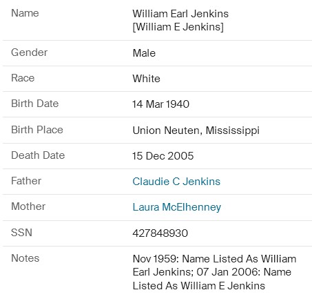 William Earl Jenkins - Age (65y 9m 1d)