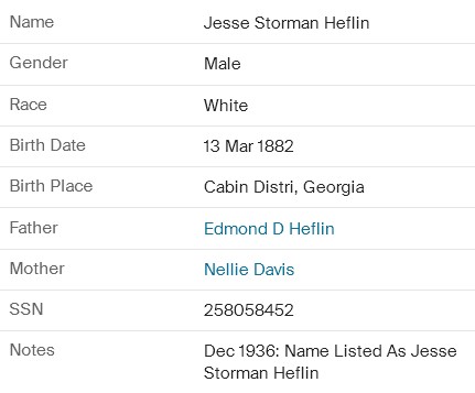 Social Security Death Index  258-05-8452