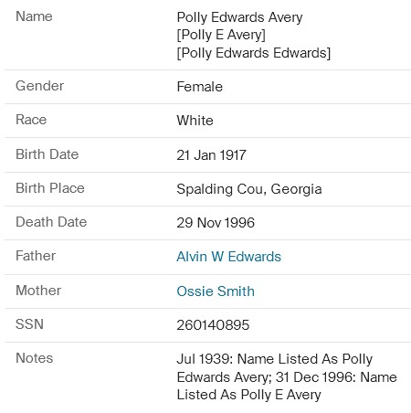 Residences1918 - Spalding County, Georgia | 1920 - Cabin, Spalding, Georgia 1930 - Griffin, Spalding, Georgia 1940 - Griffin, Spalding, Georgia 1950 - Griffin, Spalding, Georgia 1996 - , Union City, Fulton, Georgia, USA |