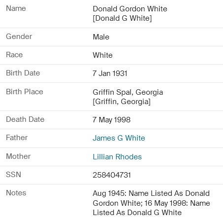 Residences1930 - Griffin, Spalding, Georgia | 1940 - Griffin, Spalding, Georgia 1950 - Griffin, Spalding, Georgia 2005 - , Keystone Heights, Clay, Florida |