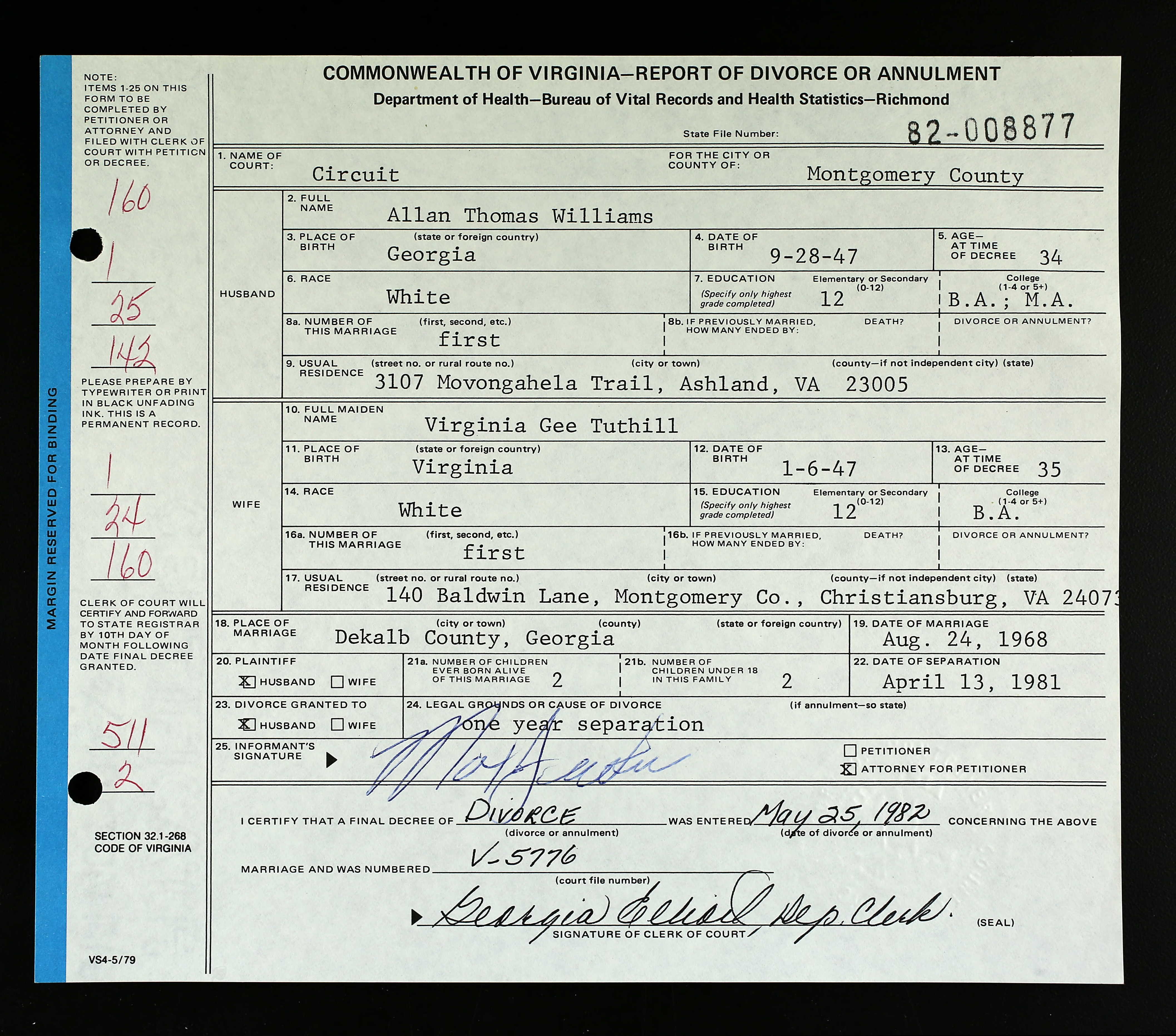 | 24 Aug 1968 - DeKalb County, Georgia | |