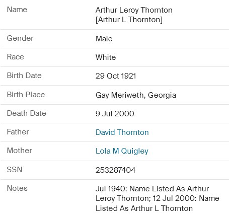 Residences1920 - Butts County, Georgia | 1930 - Towaliga, Butts, Georgia 1940 - Cabin, Spalding, Georgia 1950 - Primrose, Meriwether, Georgia |