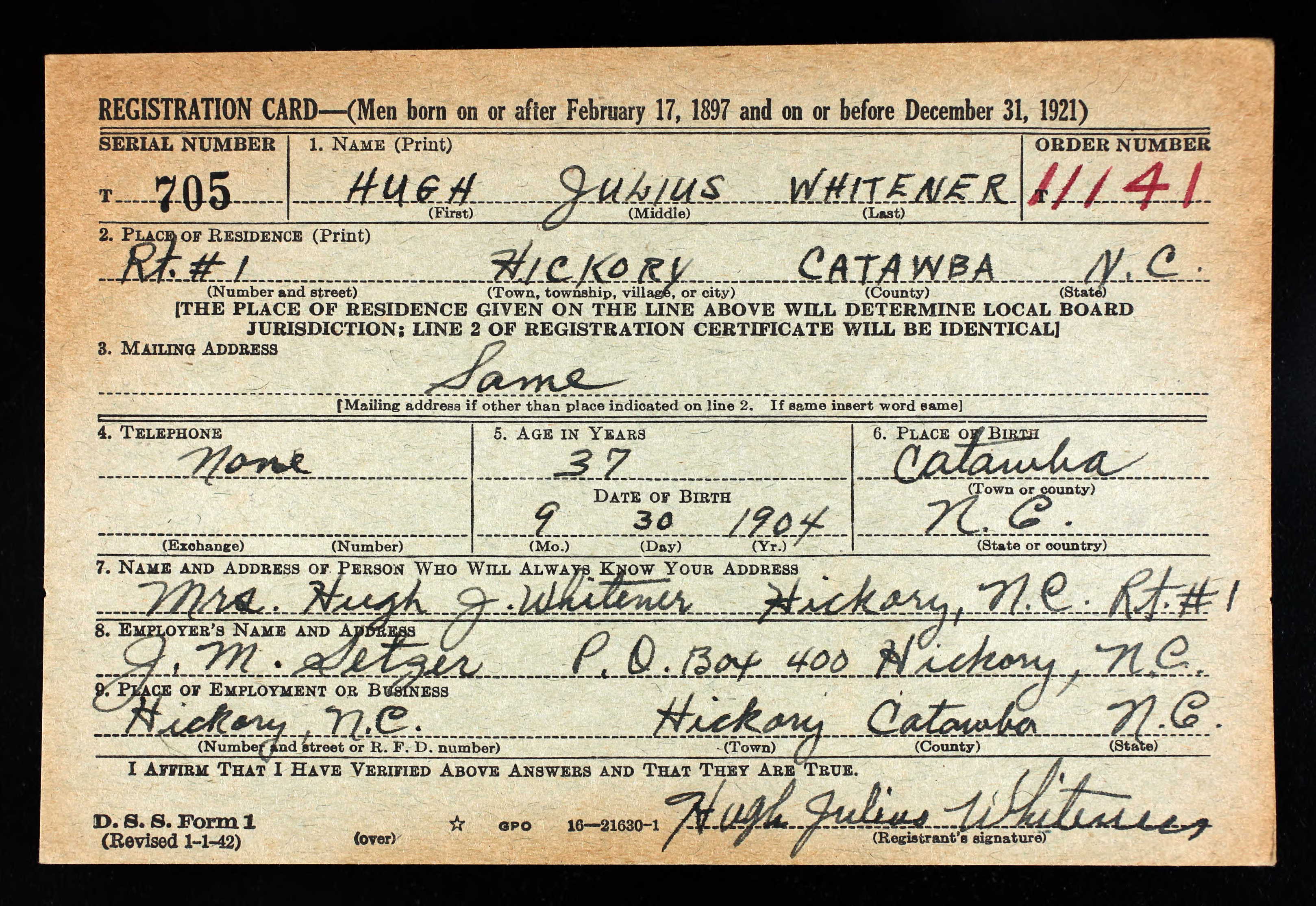 Hugh Julius Whitener - Beulah Mae Hildebran