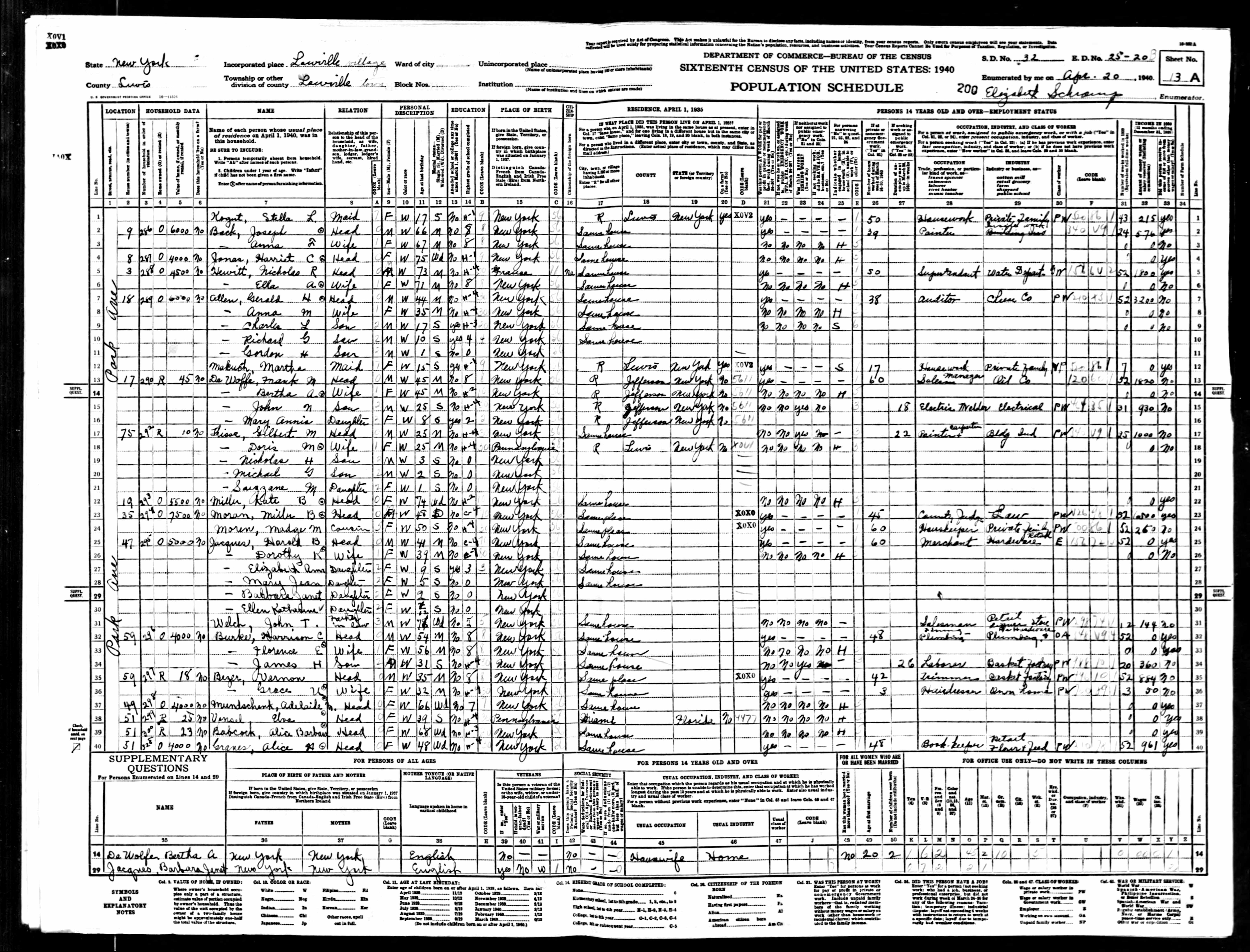 Residences1914 - Erie, Pennsylvania | 1940 - Lowville, Lewis, New York 1950 - Martinsburg, Lewis, New York 2003 - Martinsburg, Lewis, New York |