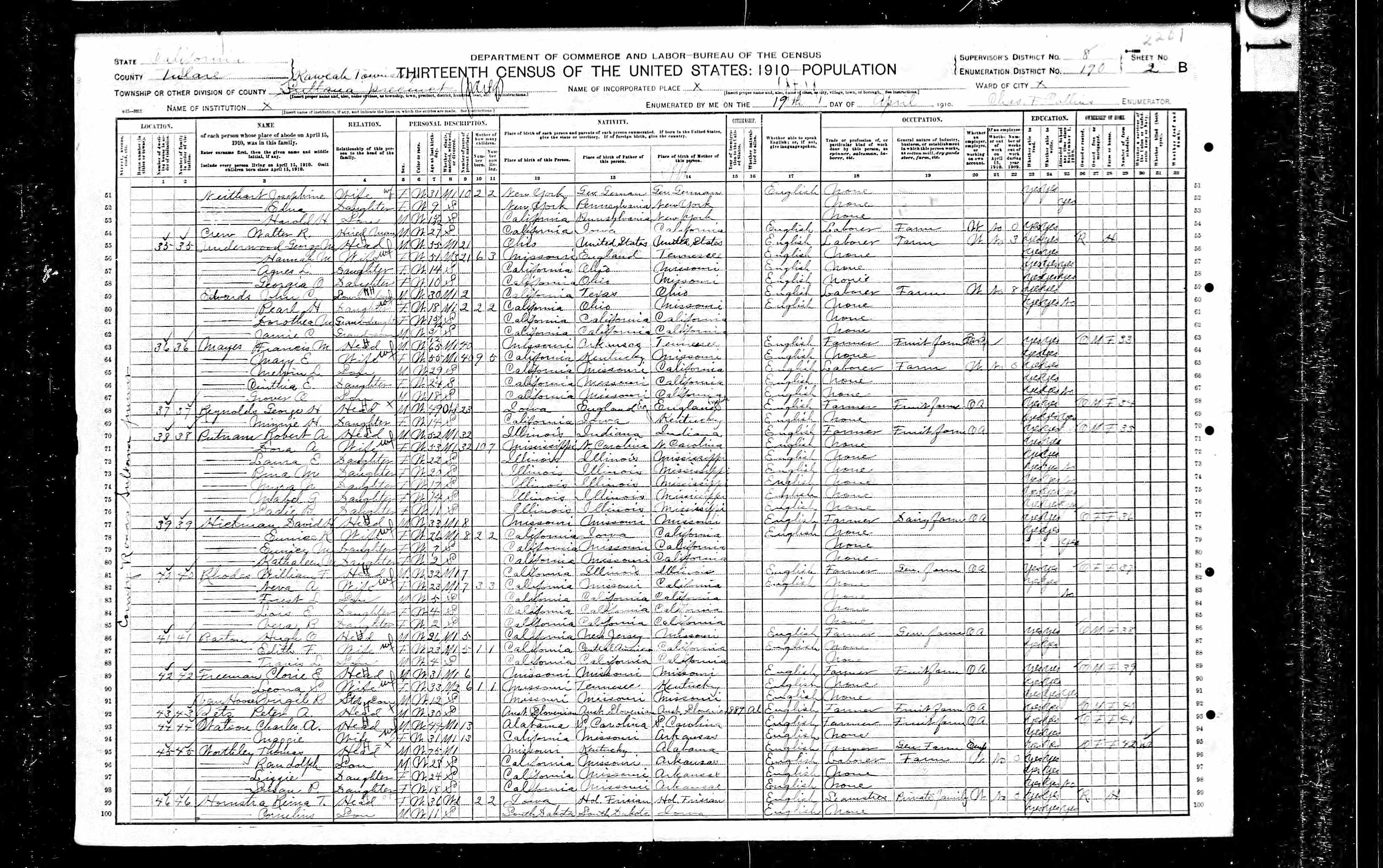 born: 13 Oct 1905 - Louisiana died: 6 Jun 1972 - Tulare, California buried: Smith Mountain Cemetery, Rd 100, Dinuba, Tulare, California | ||||||||||