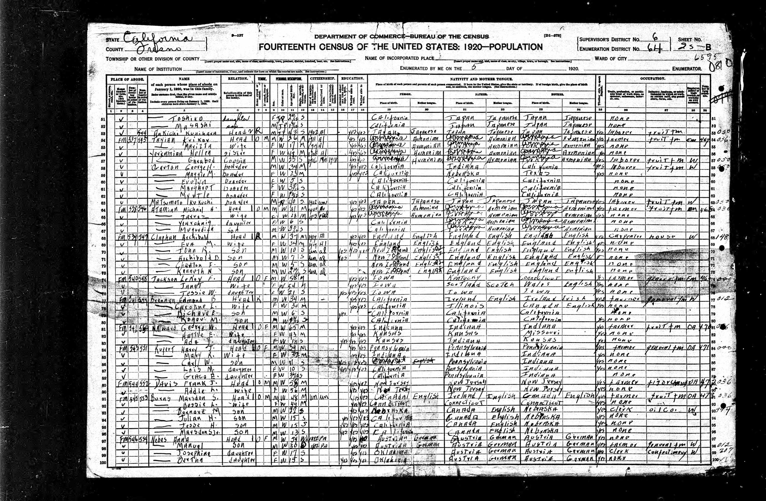 born: 6 Nov 1895 - Fresno, California died: 19 Apr 1979 - Fresno, California Buried: Smith Mountain Cemetery, Rd 100, Dinuba, Tulare, California | ||||||||||