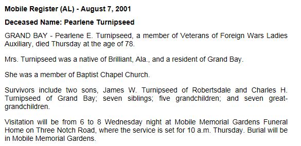 born: 5 Jan 1922 - Kirbyville, Jasper, Texas died: 19 May 2001 - Beaumont, Jefferson, Texas buried: Antioch Cemetery, Weiss Bluff Rd, Buna, Jasper, Texas, USA | ||||||||||