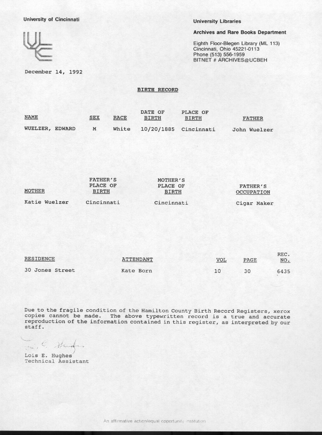 | Son of Ludwig Wuelzer & Barbara Collet | ||