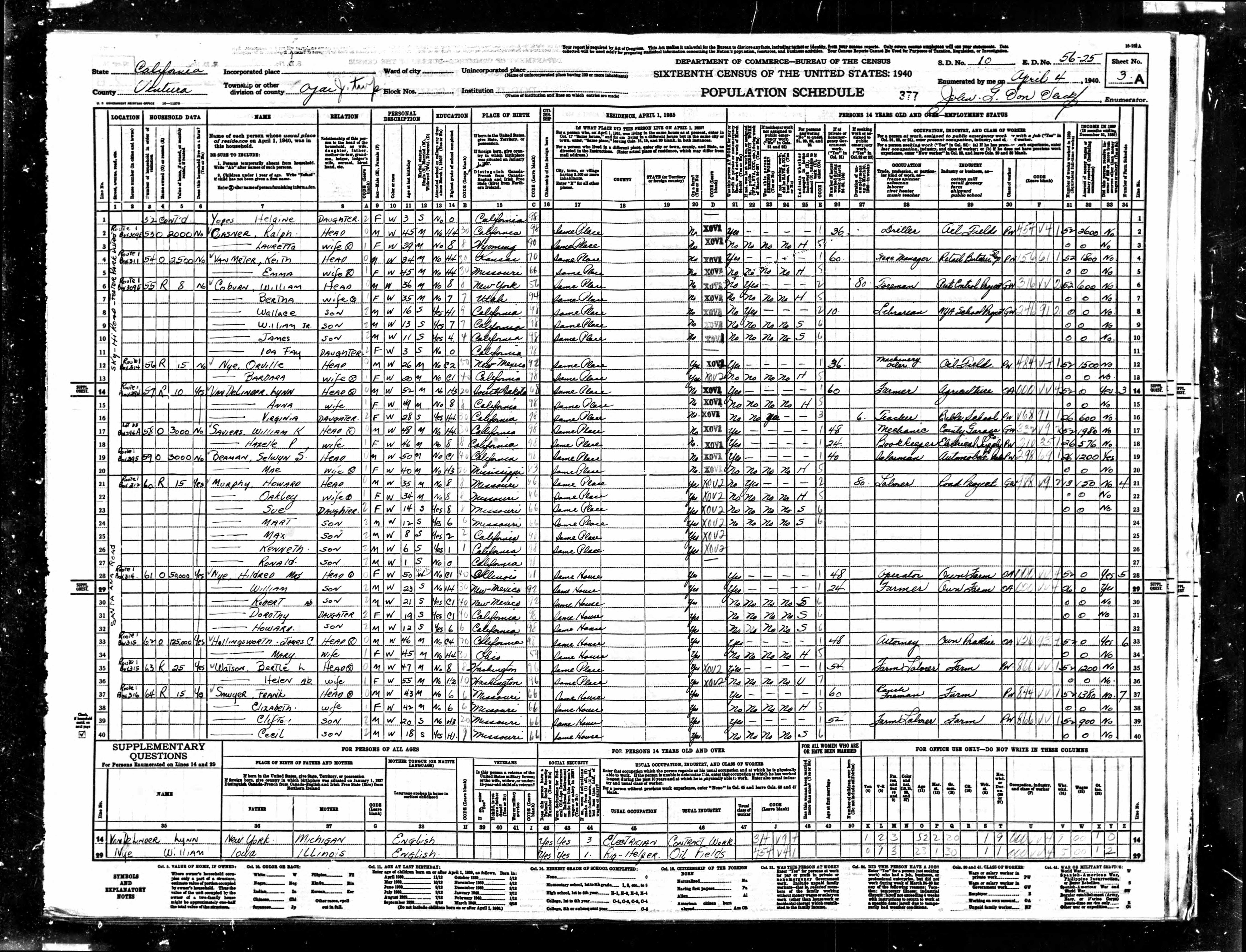 | - Census: 1900, 1910, 1930, 1940 | ||