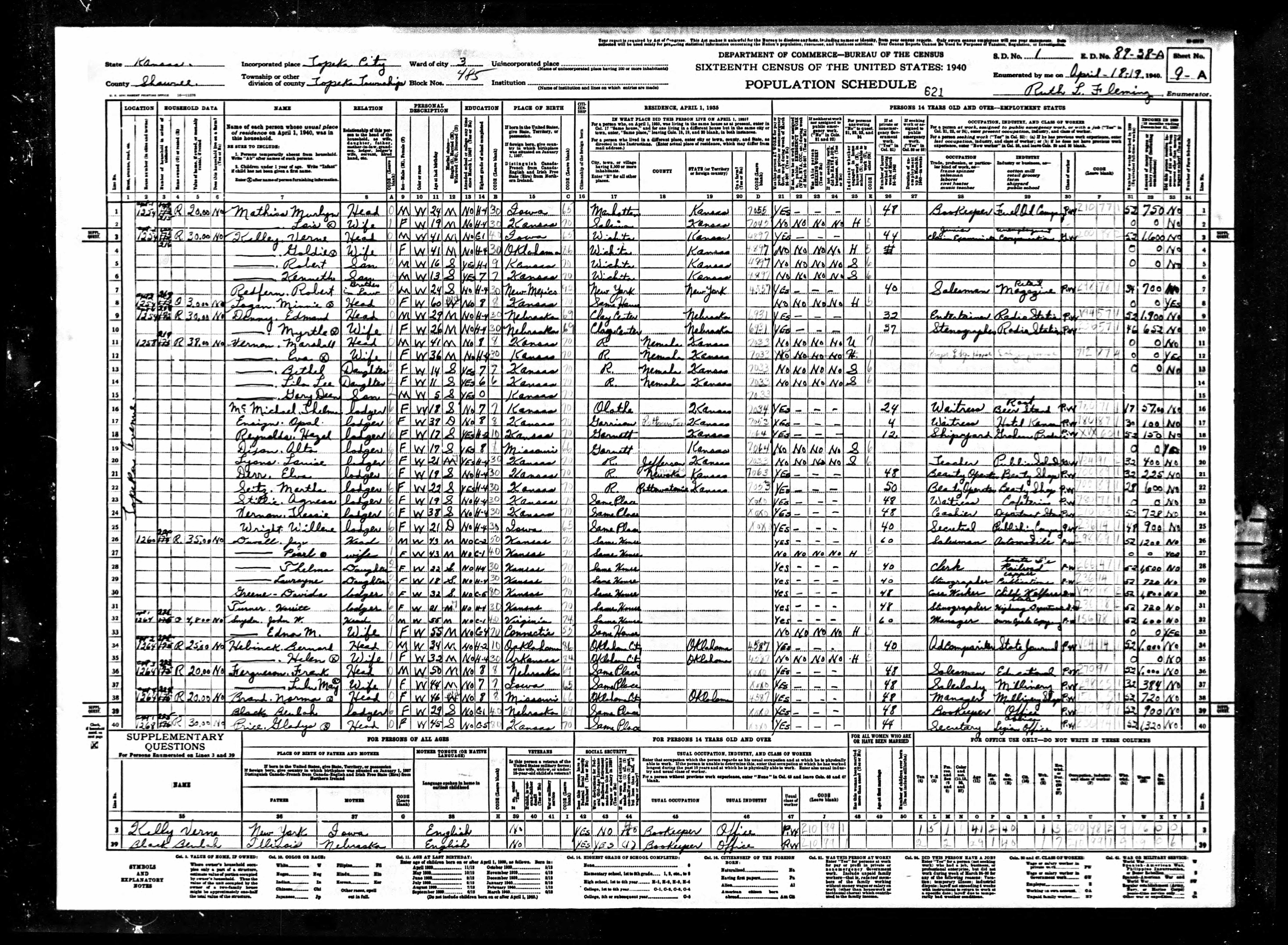 born: 4 Apr 1899 - Kansas died: 7 Jun 1990 - Wichita, Sedgwick, Kansas buried: Benton Cemetery, SW 20th St, Benton, Butler, Kansas, USA | ||||||||||
