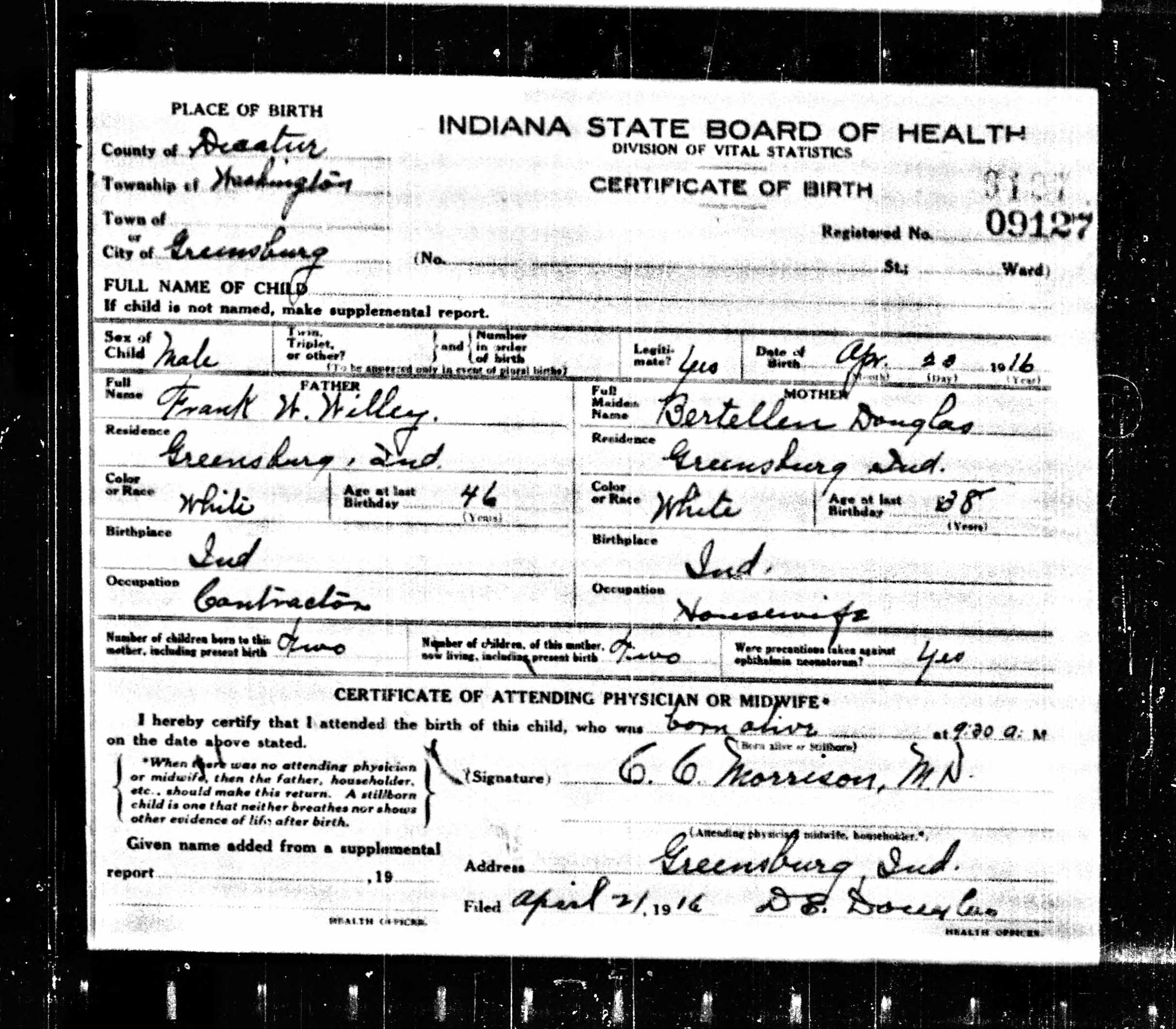 born: 26 Sep 1892 - Indiana died: 25 Feb 1962 Buried: Benton Cemetery, SW 20th St, Benton, Butler, Kansas, USA | ||||||