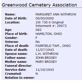 | Children of Anna Margaret Brosey & Clarence Val Withrow | ||