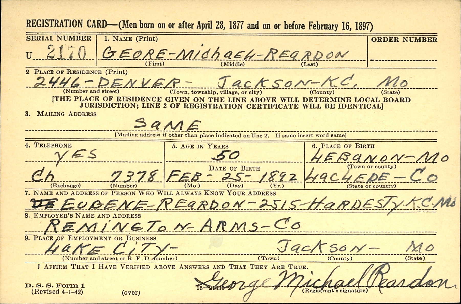 | Son of George Allen Vernon & Ella Leota Miller | ||||||||||||