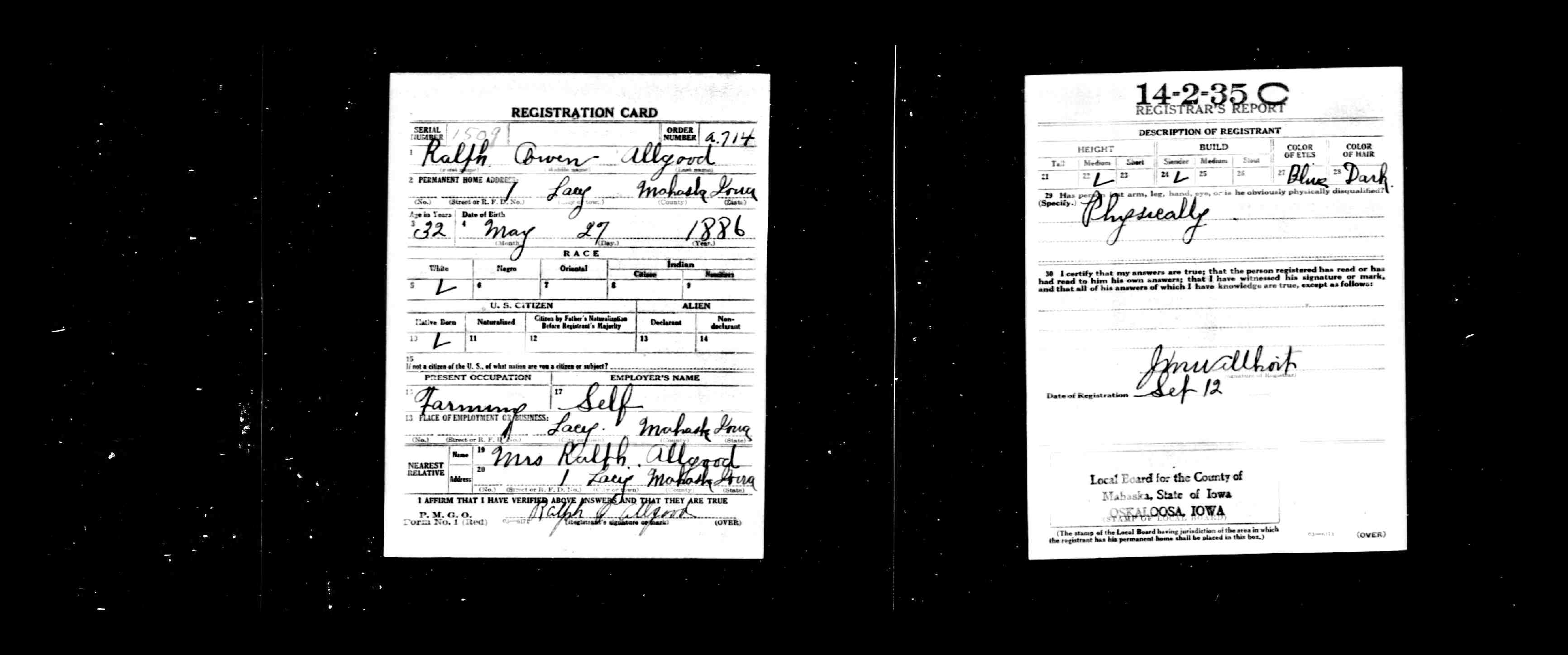 born: 31 Jan 1903 - Oberlin, Decatur, Kansas died: 2 Sep 1983 - Lane County, Oregon buried: Burial Unknown | ||