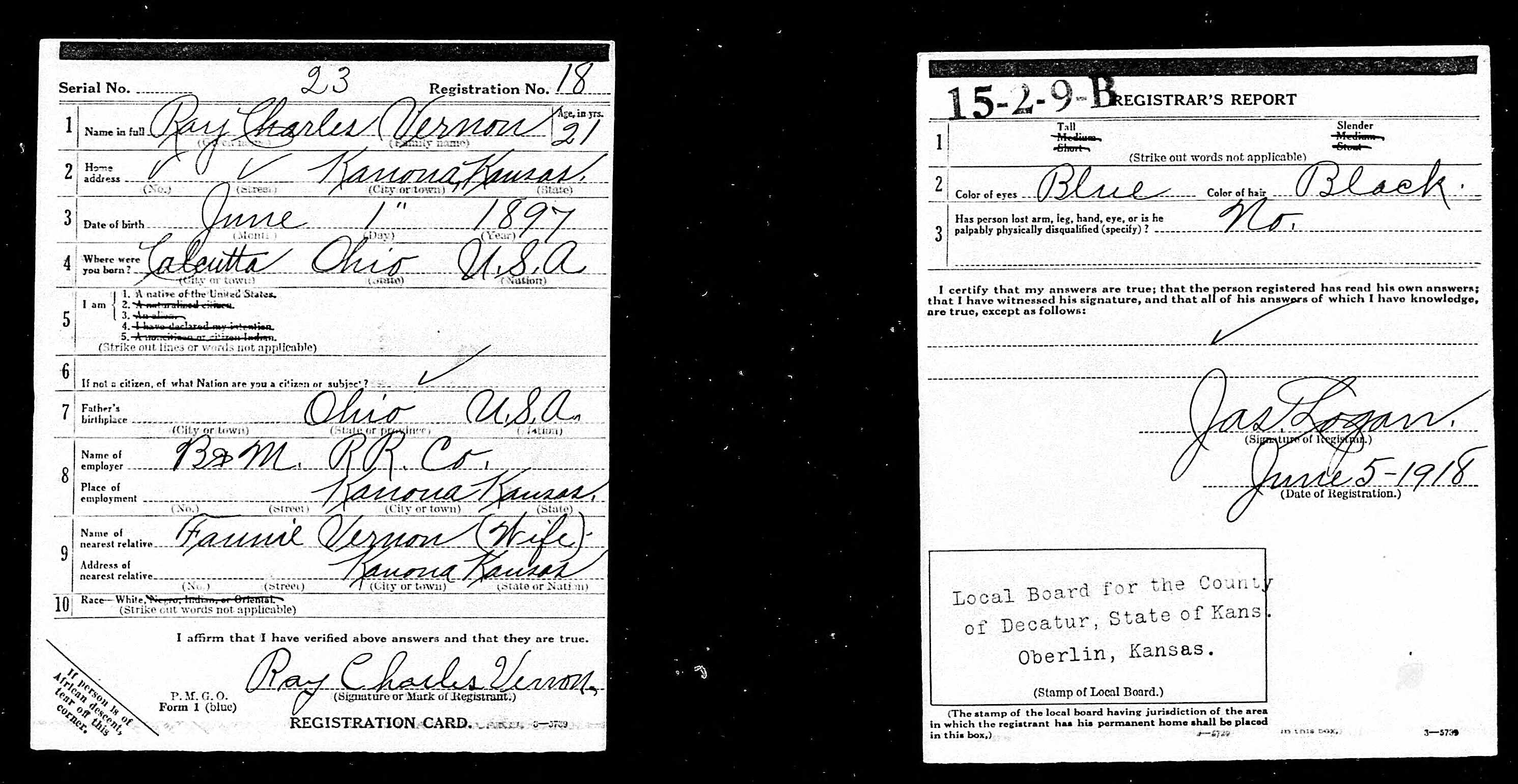 | m. Ray Charles Vernon - Married: 15 Feb 1918 - Oberlin, Decatur, Kansas | ||||||||||||