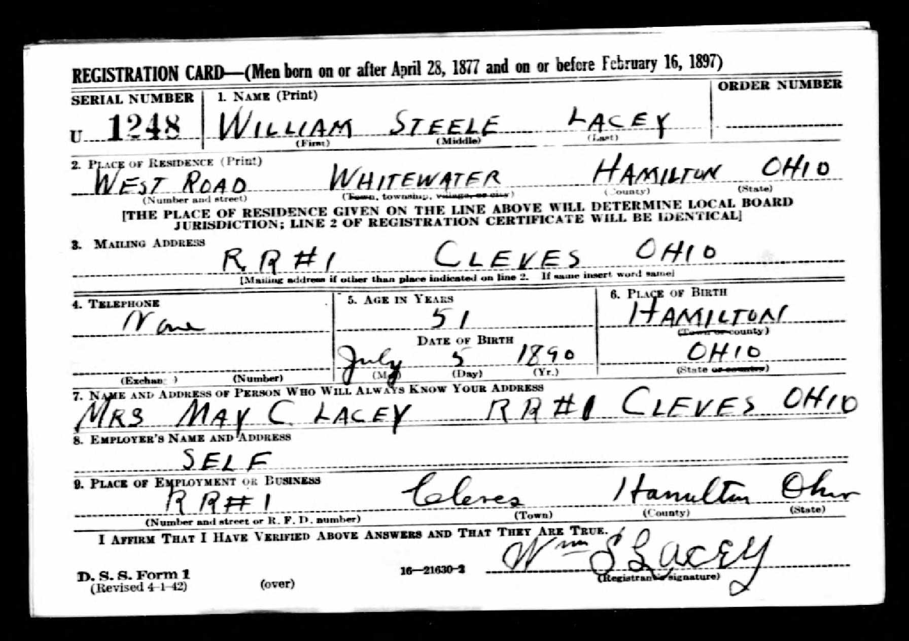 born: 10 Apr 1881 - Ohio died: 18 Nov 1972 - Hamilton, Ohio buried: Greenwood Cemetery, 1602 Greenwood Ave, Hamilton, Butler, Ohio, USA, 45011 (U-113-03) | ||||||||||