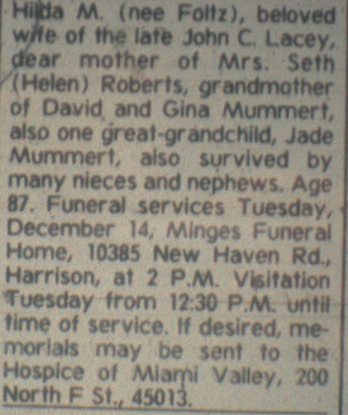 | Children of John A. Hoppas & Fern G. Troutman | ||||||||||