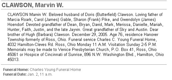 | m. Clarence Val Withrow - Married: 11 Feb 1891 - Butler County, Ohio | ||