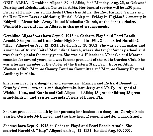 | Daughter of George Allen Vernon & Ella Leota Miller | ||