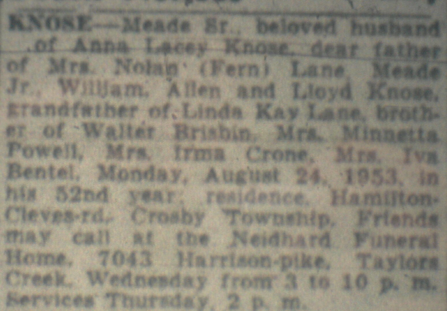 born: 1881 - Ohio died: 1934 buried: Venice Cemetery, Layhigh Rd, Ross, Butler, Ohio, USA, 45013 | ||