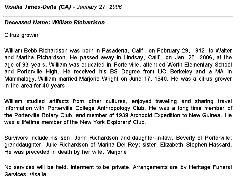 born: 14 Jan 1877 - Neosho Falls, Woodson, Kansas died: 15 Jun 1928 - Modesto, Stanislaus, California Buried: Modesto Pioneer Cemetery, 905 Scenic Drive, Modesto, Stanislaus, California, USA, 95350 (A-Tier 6-52) | ||