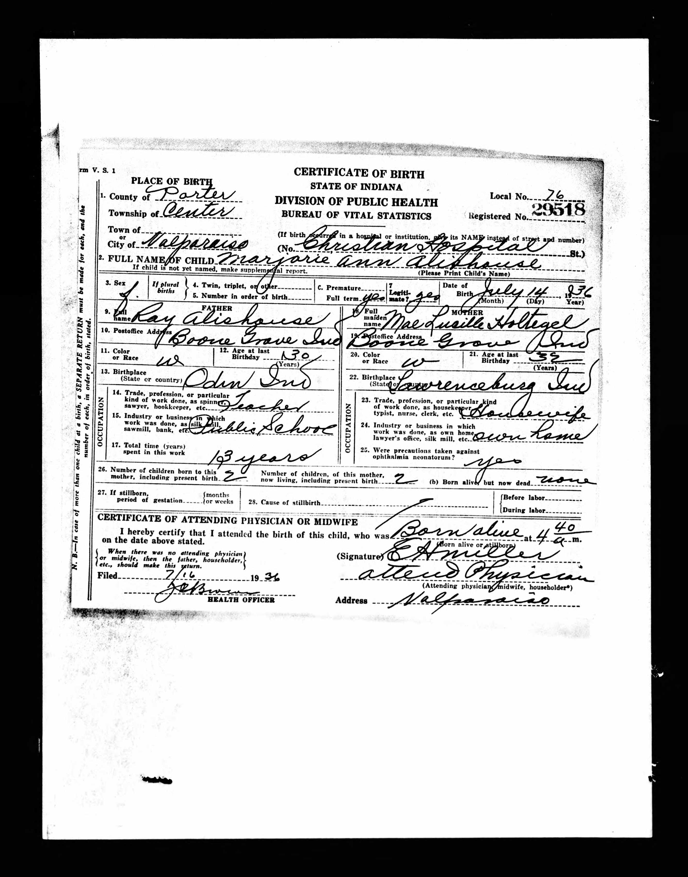 born: 29 Mar 1929 - Noblesville, HaMilton, Wayne, Indiana | ||