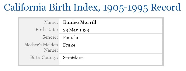 | Daughter of Herbert O. Meckel & Birdie Bee | ||||||||||