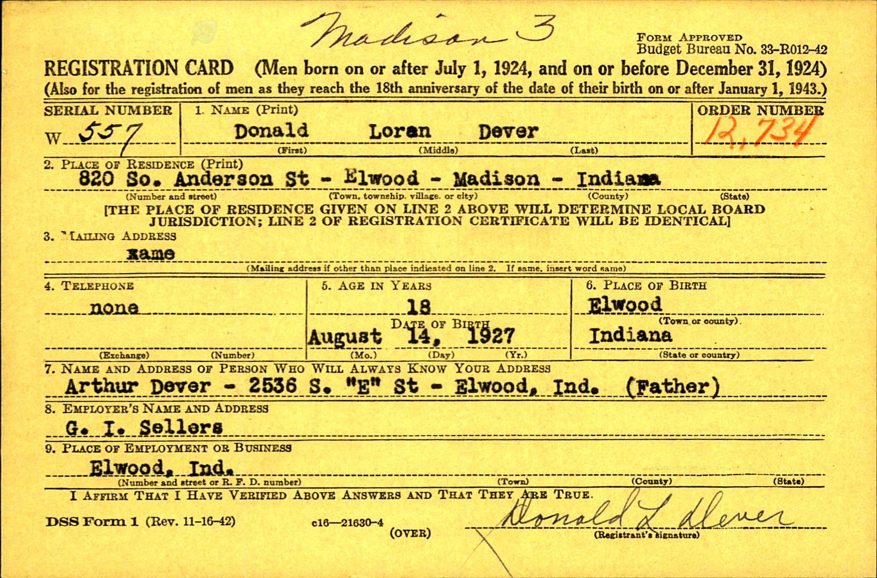 | m. Peggy Louise Whelchel - Married: 12 Jul 1946 - Noblesville, HaMilton, Wayne, Indiana | ||||||||||