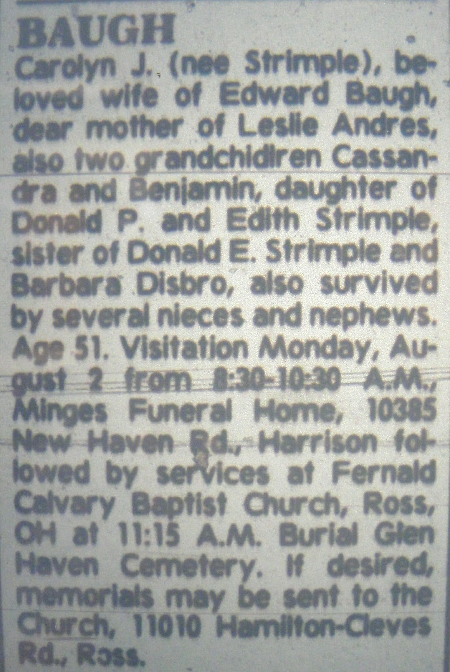 born: 8 Feb 1948 - Warsaw, Kosciusko, Indiana died: 26 Mar 1997 - Warsaw, Kosciusko, Indiana Buried: Oakwood Cemetery, N Maple Ave, Warsaw, Kosciusko, Indiana, USA | ||||||||