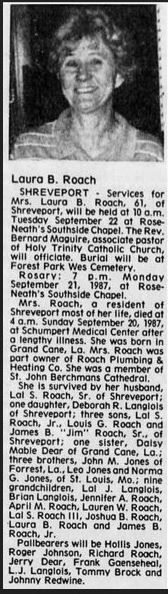 born: 31 Dec 1919 died: 23 Nov 1986 buried: Forest Park West Cemetery, 4400 Meriweather Road, Shreveport, Caddo, Louisiana, USA, 71109 | ||||||||||