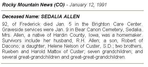| Daughter of Dewey Daniel Mathis & Velma J. McCalman | ||