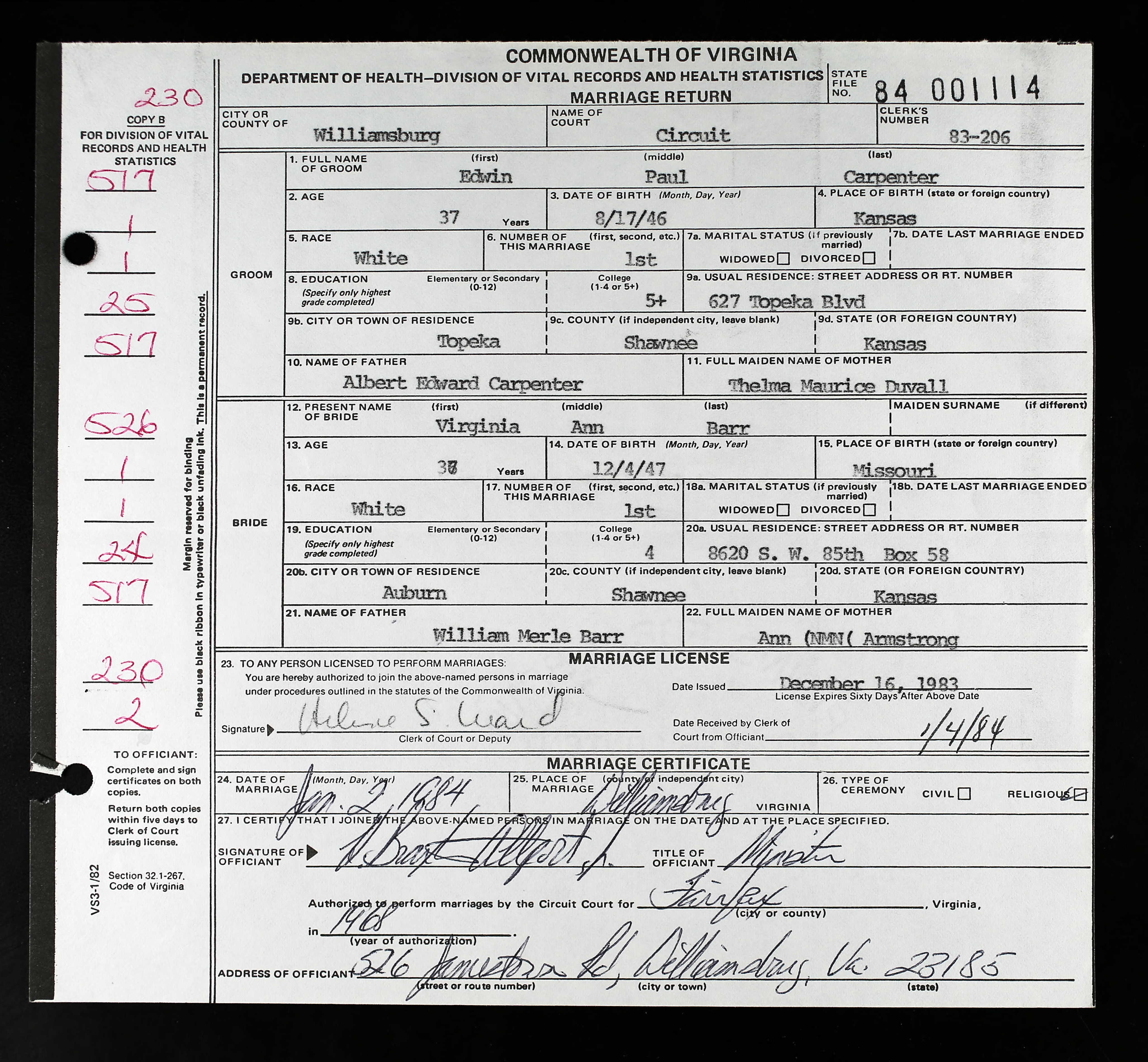 | | m. Claude Zylstra - Married: 29 Dec 1962 - Oskaloosa, Mahaska, Iowa |