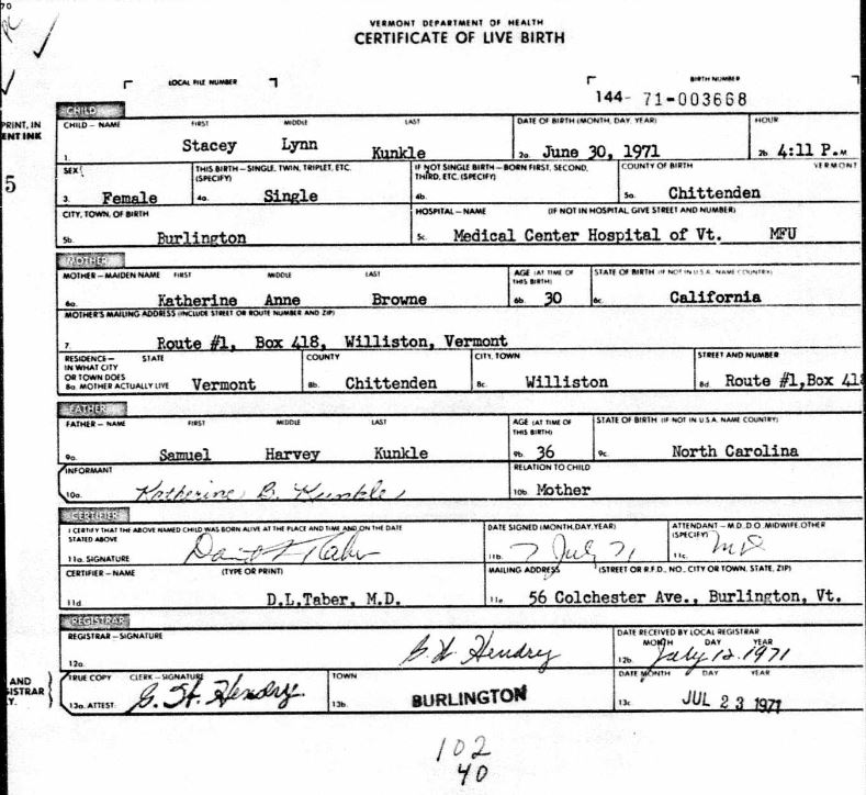 | Daughter of Tracy Stodgel & Leonard Sutton | ||