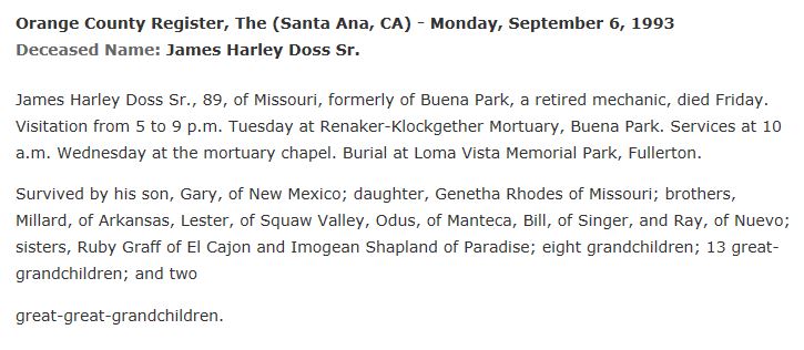 | [8768] James Harley Doss Jr (21 Jan 1928 - 8 Jul 1991) | ||||||||