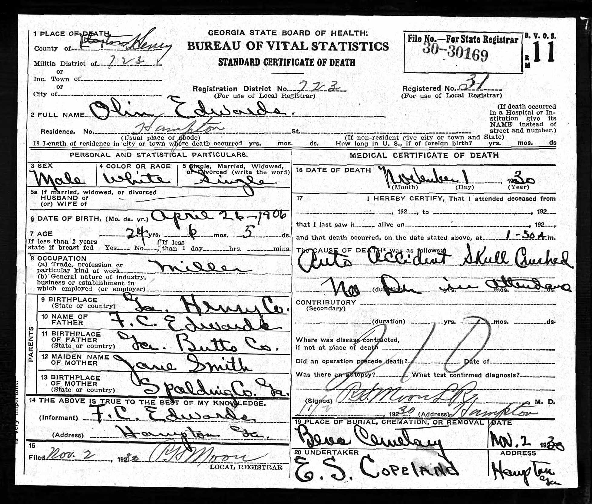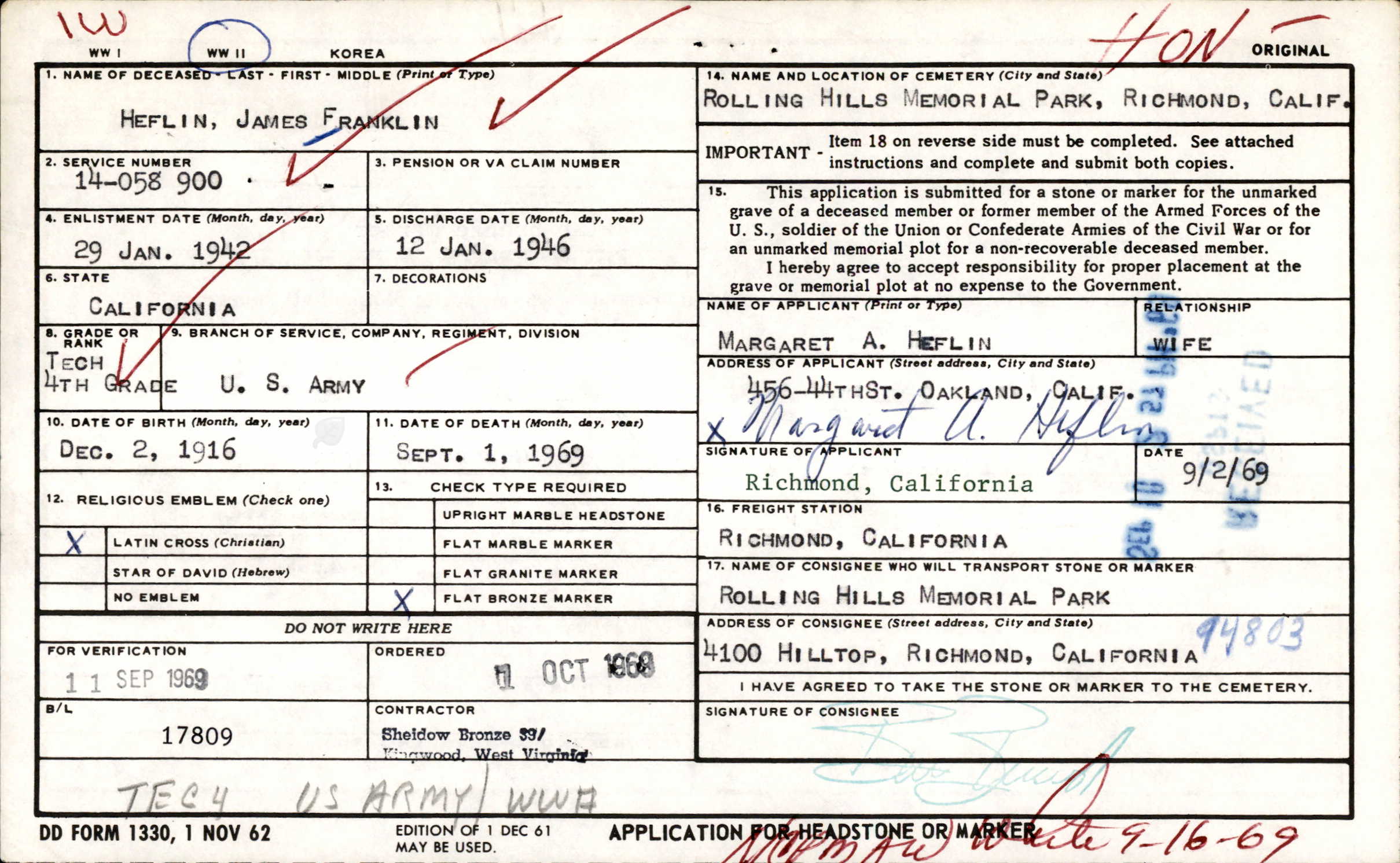 born: 24 Dec 1915 - North Carolina died: 5 Oct 1987 - Hillsborough, North Carolina Buried: Hillsborough Town Cemetery, E Corbin St, Hillsborough, Orange, North Carolina, USA | ||||||||||