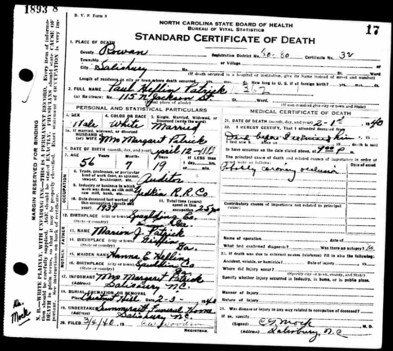born: 5 Feb 1914 - North Carolina died: 9 Feb 1974 - Hillsborough, North Carolina Buried: Hillsborough Town Cemetery, E Corbin St, Hillsborough, Orange, North Carolina, USA | ||||||||||
