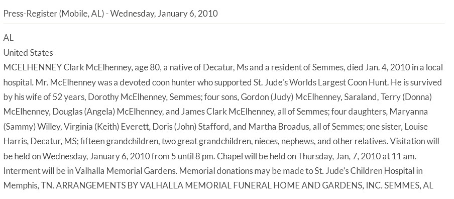 | Son of Hoye Mason Hegwood & Marjorie Lenora Cobb | ||||||||||