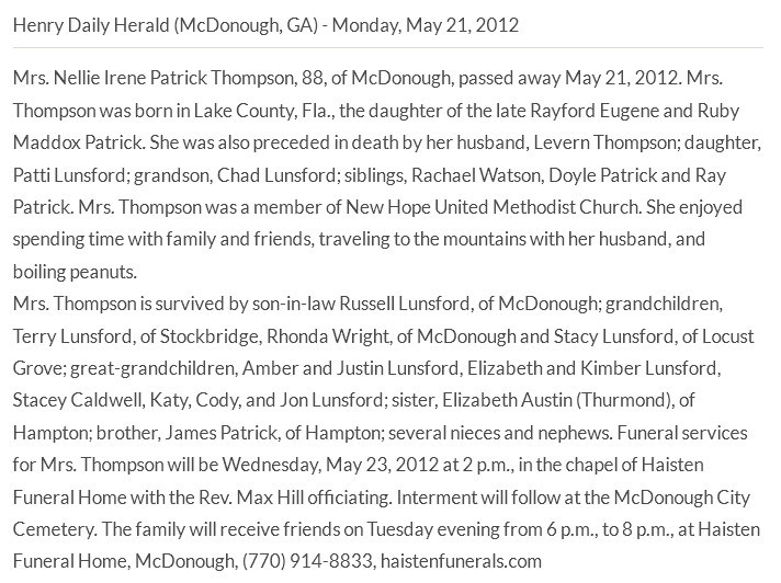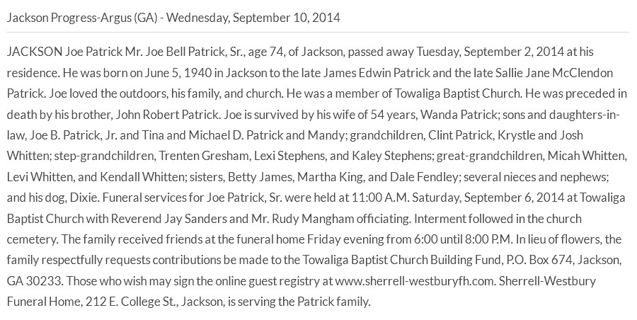 | Son of William James Kirkland & Lula Eugenia Patterson | ||