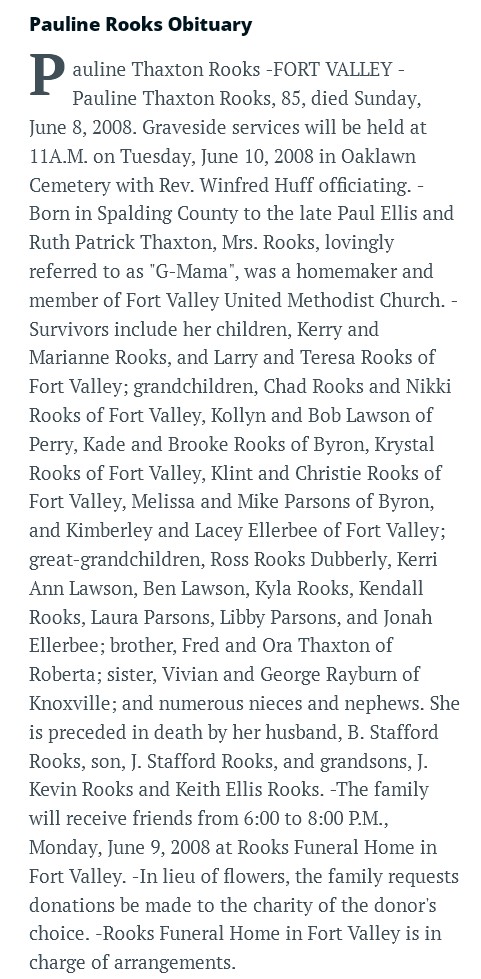 born: 18 Feb 1925 died: 11 Apr 2015 - Tennessee Buried: Shelby Forest Baptist Church Cemetery, 1207 Locke Cuba Road, Giles Town, Shelby, Tennessee, USA, 38053 | ||||||||||
