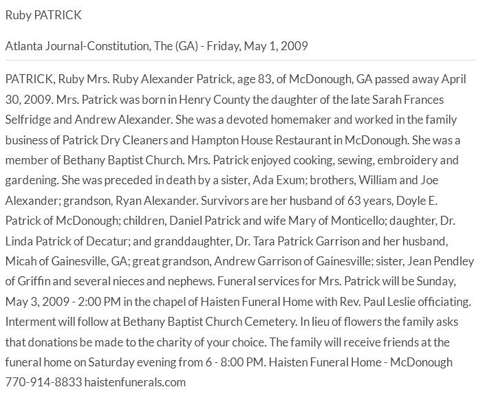 | [-----] Sandra Fae Patterson (1938 - ) | ||