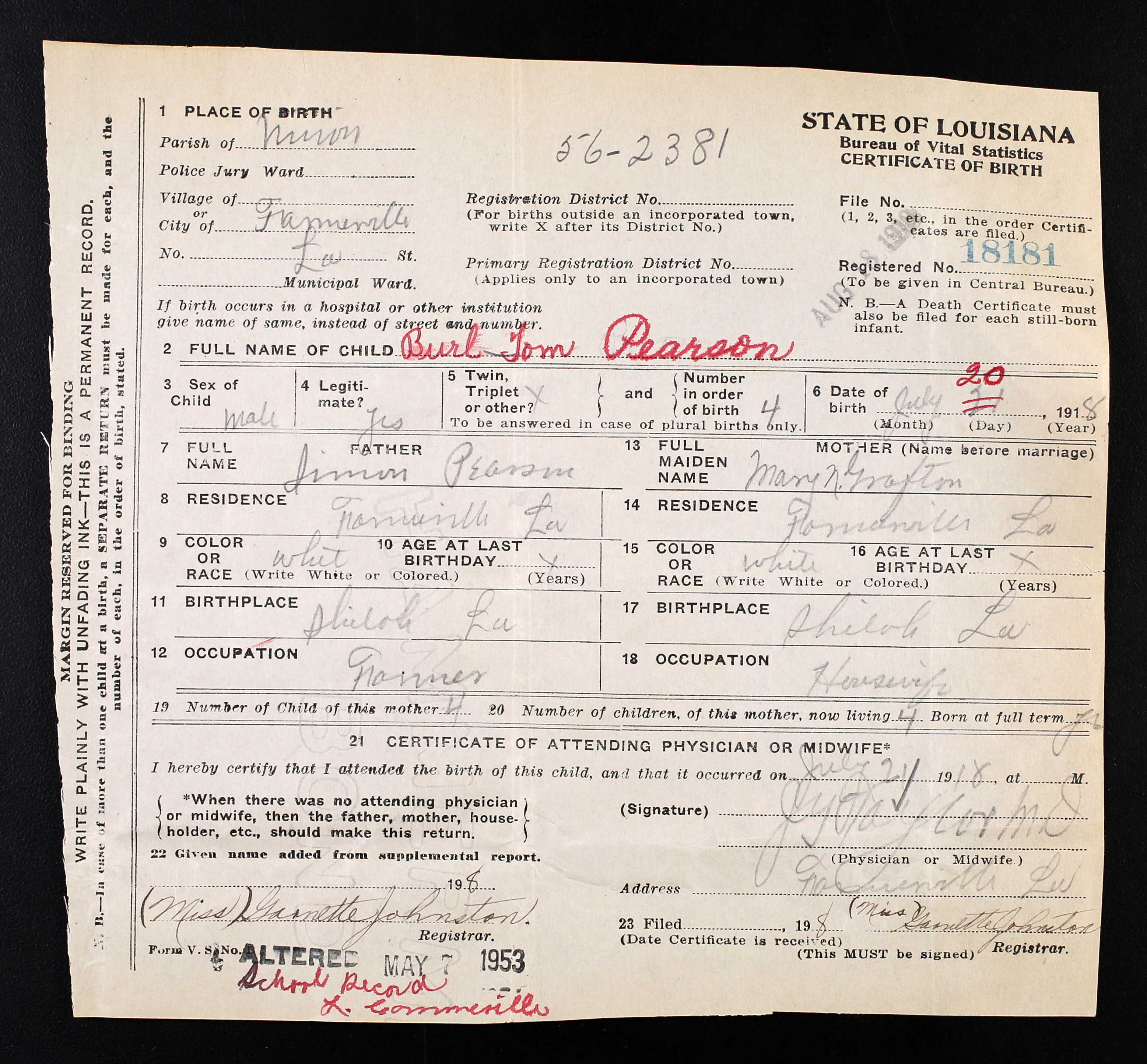 born: 19 Aug 1920 - Butts County, Georgia