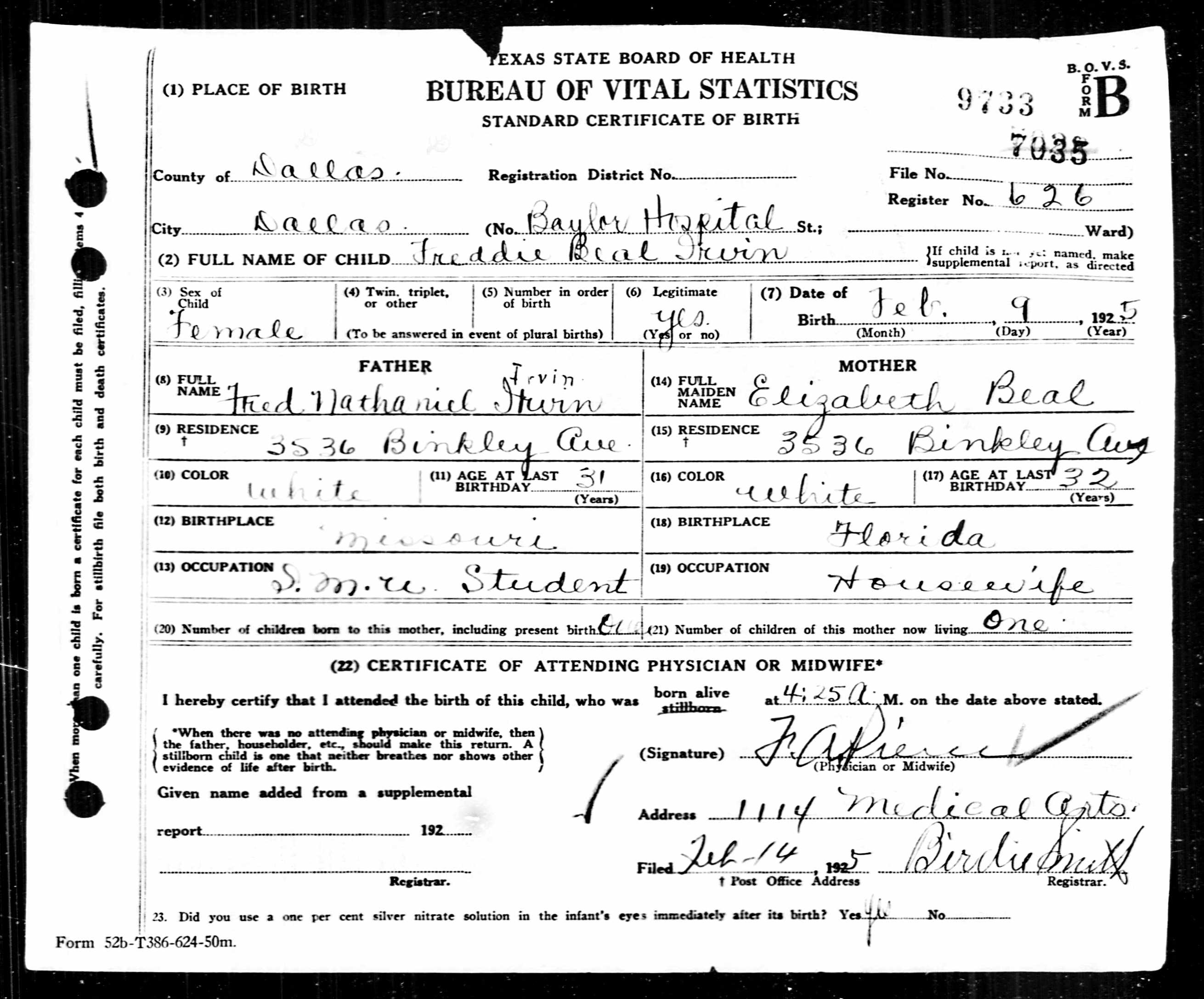 died: 4 Feb 1975 - Fort Worth, Texas