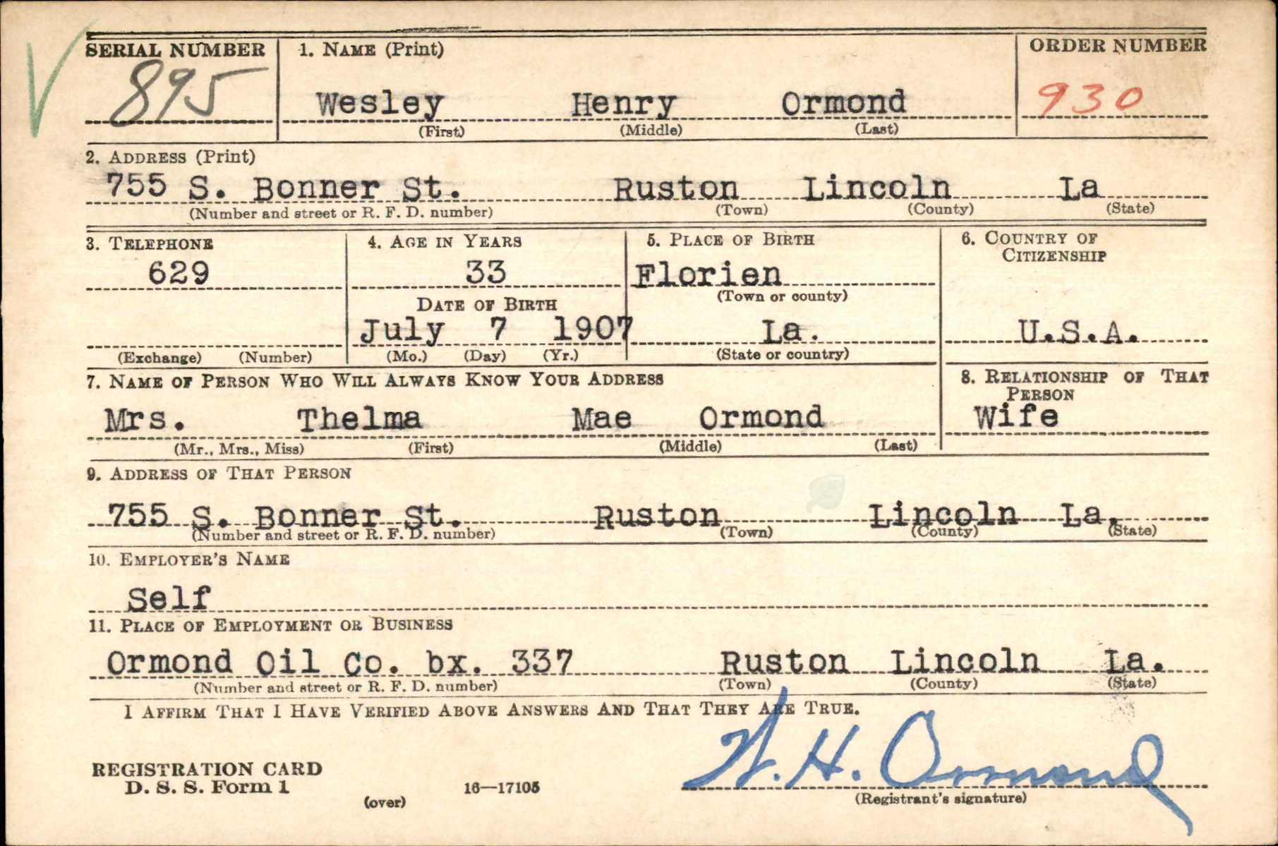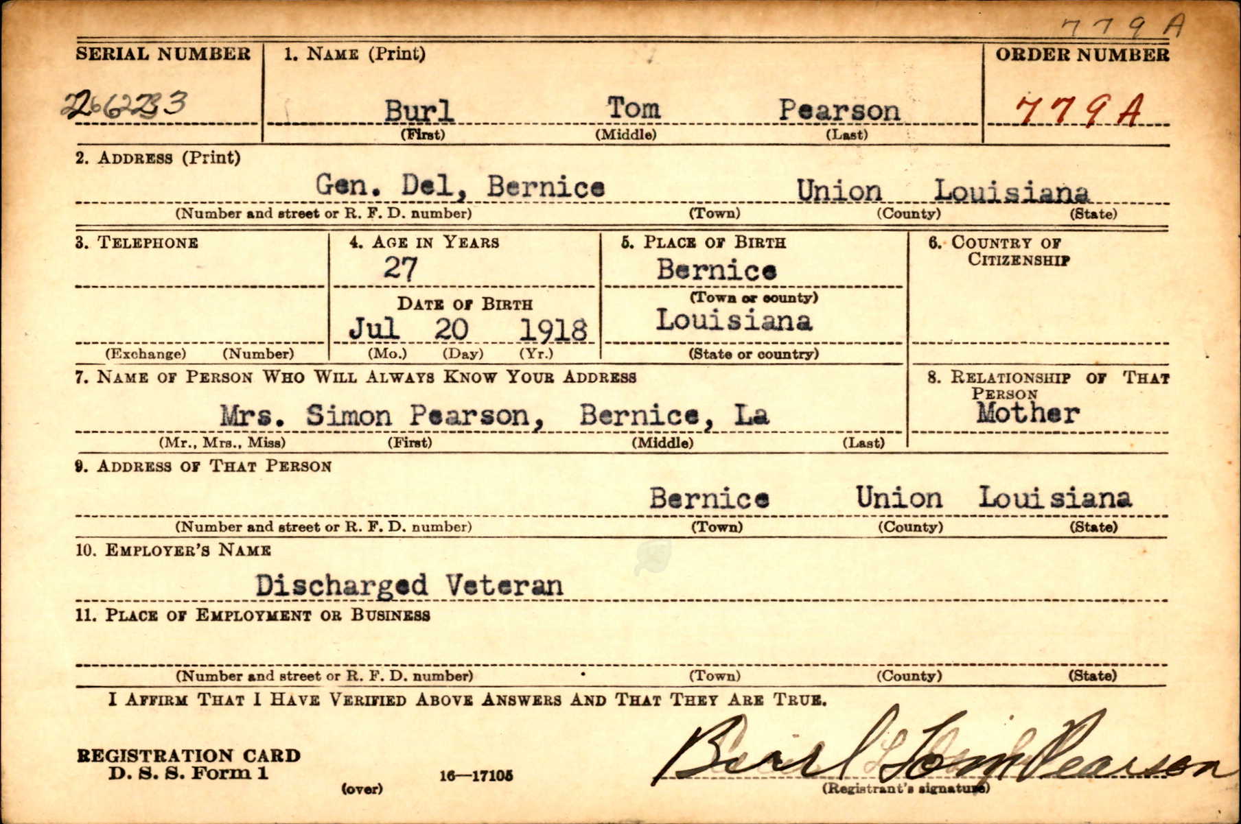 | | - Records: WWII Draft Card