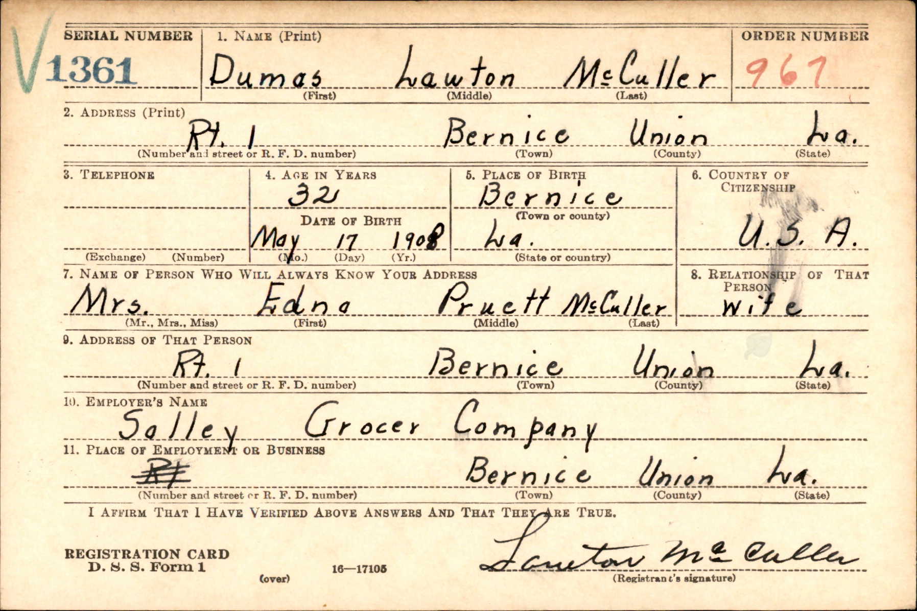 | | | - Records: WWII Draft Card