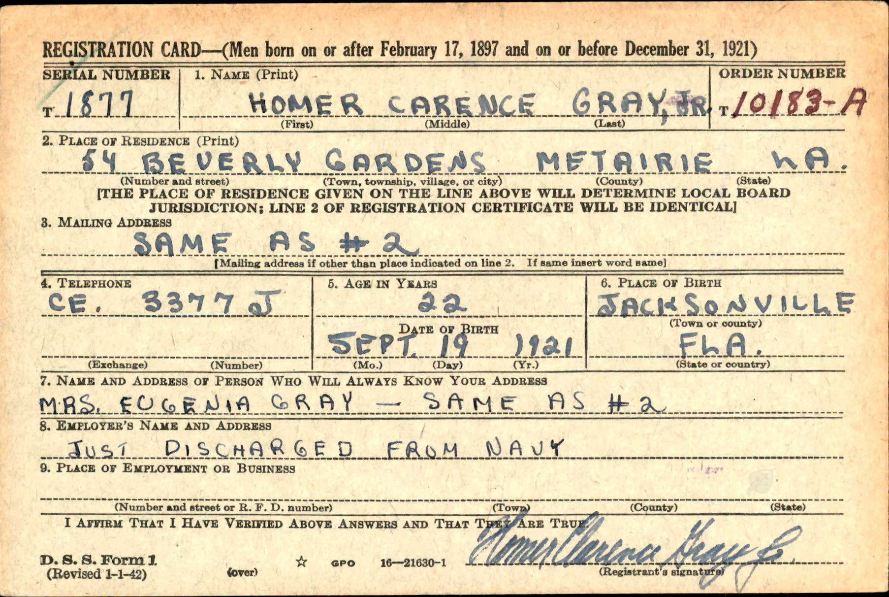 | SSAN Name: | Guy Hammock |